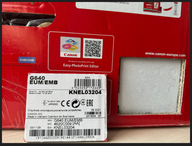 2.2. Wycięcie oryginalnego kodu kreskowego oraz numeru seryjnego Produktu Promocyjnego (Produktów Promocyjnych), pochodzącego (pochodzących) z opakowania zakupionego Produktu Promocyjnego (Produktów Promocyjnych) i przesłanie skanu lub zdjęcia (w kolorze) wyciętego kodu/kodów na tle opakowania, z którego został wycięty kod poprzez formularz zgłoszeniowy na stronie www.canon.pl/promocja-drukarki.